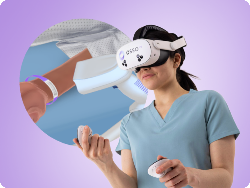 Osso VR Nursing Series provides scenario-based training in high-frequency, critical areas, including IV insertion and central line dressing change. Learners develop procedural proficiency through repeatable practice in VR that mirrors end-to-end clinical workflows. Because it's delivered in virtual reality, the platform eliminates the need for consumables and constant nurse educator facilitation, allowing programs to expand access without adding operational strain.