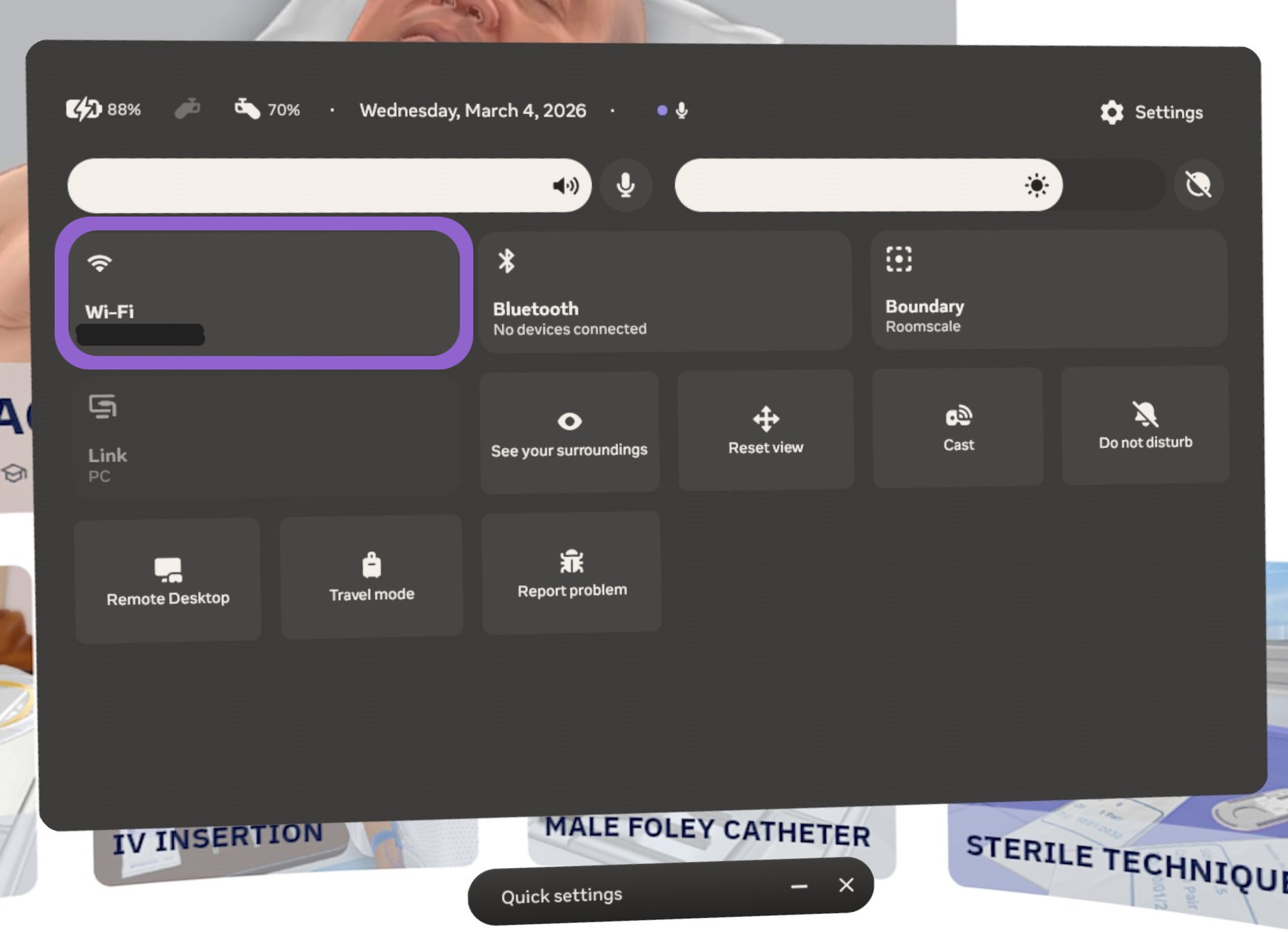 - Open the Quick Settings menu located on the Meta Menu taskbar.