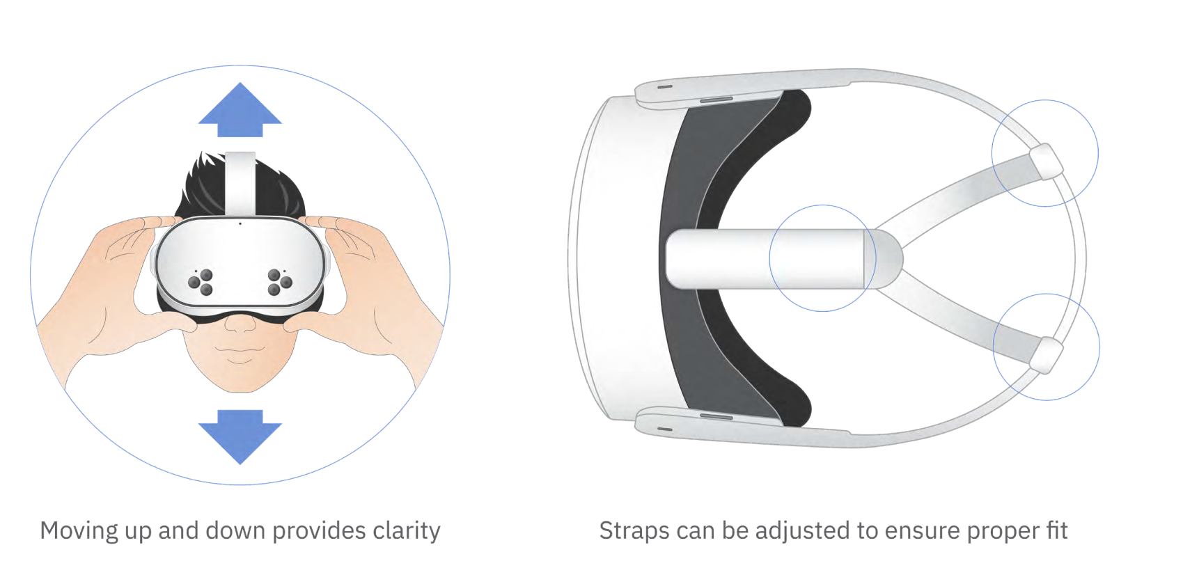 - Repeat these adjustments until the image is clear and the headset feels snug, balanced, and comfortable.